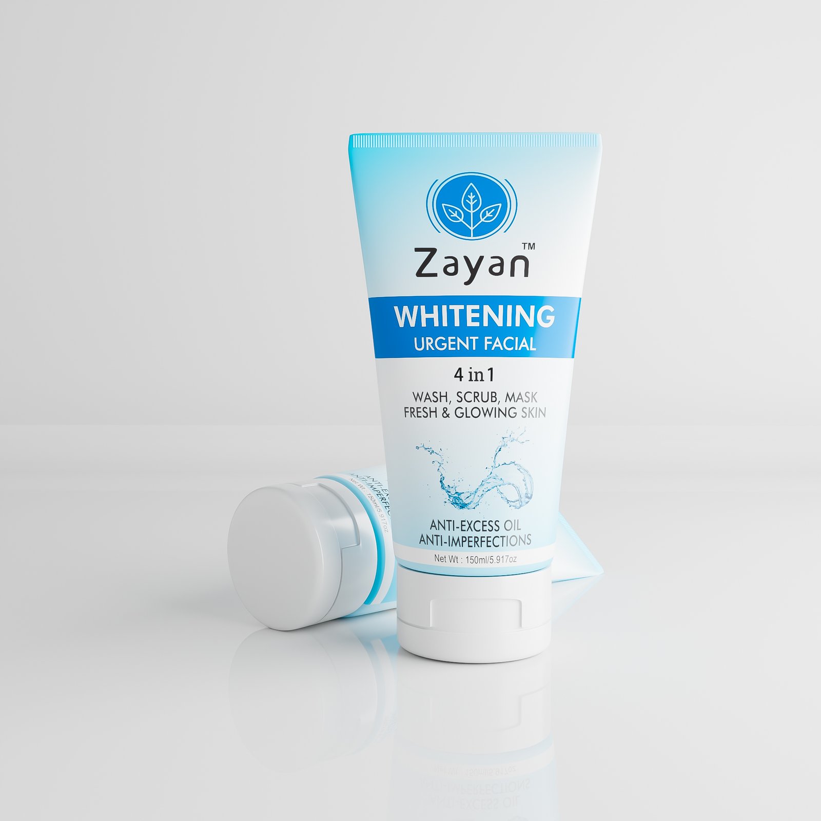 Reveal instant glow and silky-soft skin with Zayan 4 in 1 Urgent Facial, your ultimate skincare solution. Specially crafted with natural fruit extracts, skin-brightening actives, hydrating botanicals, and nourishing vitamins, this facial kit works in four powerful steps: deep cleansing, exfoliation, hydration, and radiance boost.